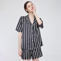 Customize Black Stripe 19MM Silk Sleepwear Blouse Shorts Mulberry Silk Pajamas Nightgowns Ensemble De Pyjama En Soie